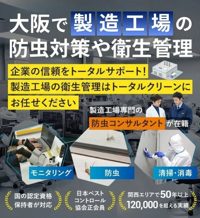 大阪で製造工場クリーンルームの防虫対策ならトータルクリーン