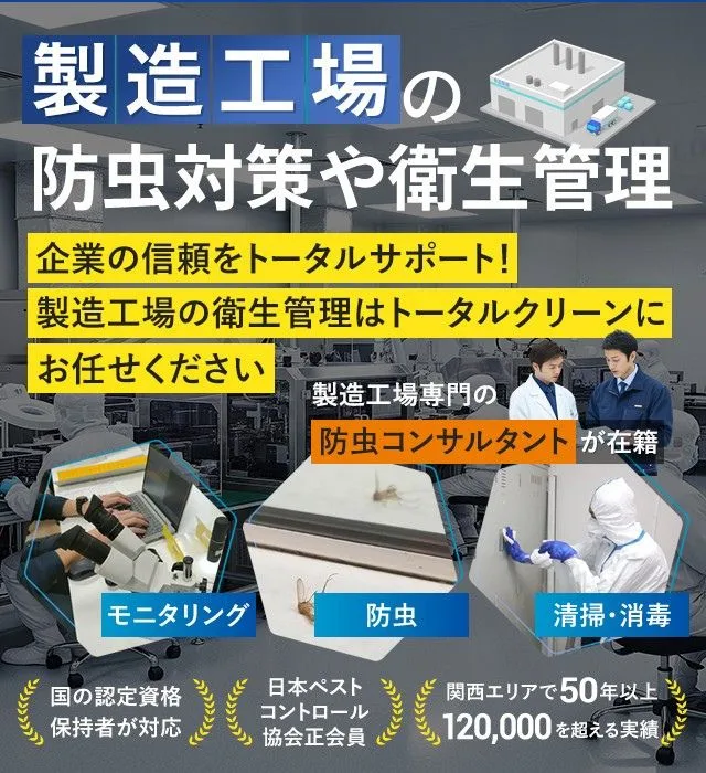 兵庫県で製造工場クリーンルームの防虫対策ならトータルクリーン