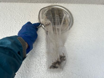 マンション自宅の玄関の上をふと見上げると、通気口にハチがたくさん集まっているのを発見し、巣が出来ているか分かりにくい状態でしたので、専門業者さんに相談して駆除してもらうことにしました。即日対応で駆除してもらい、助かりました。営巣は無かったようですが、ハチの数が思いのほか、多かったので、依頼して良かったです。また機会があればよろしくお願いします。