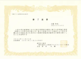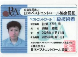 保有するペストコントロール1級技術者の資格を活かし、専門知識と確かな技術で、お客様の多様なお悩みの原因を的確に究明し、迅速な解決をお約束します。